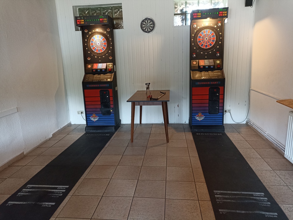 In den Räumlichkeiten befindet sich ein Tresen mit Zapfanlage, Dartautomaten und natürlich Toiletten.
