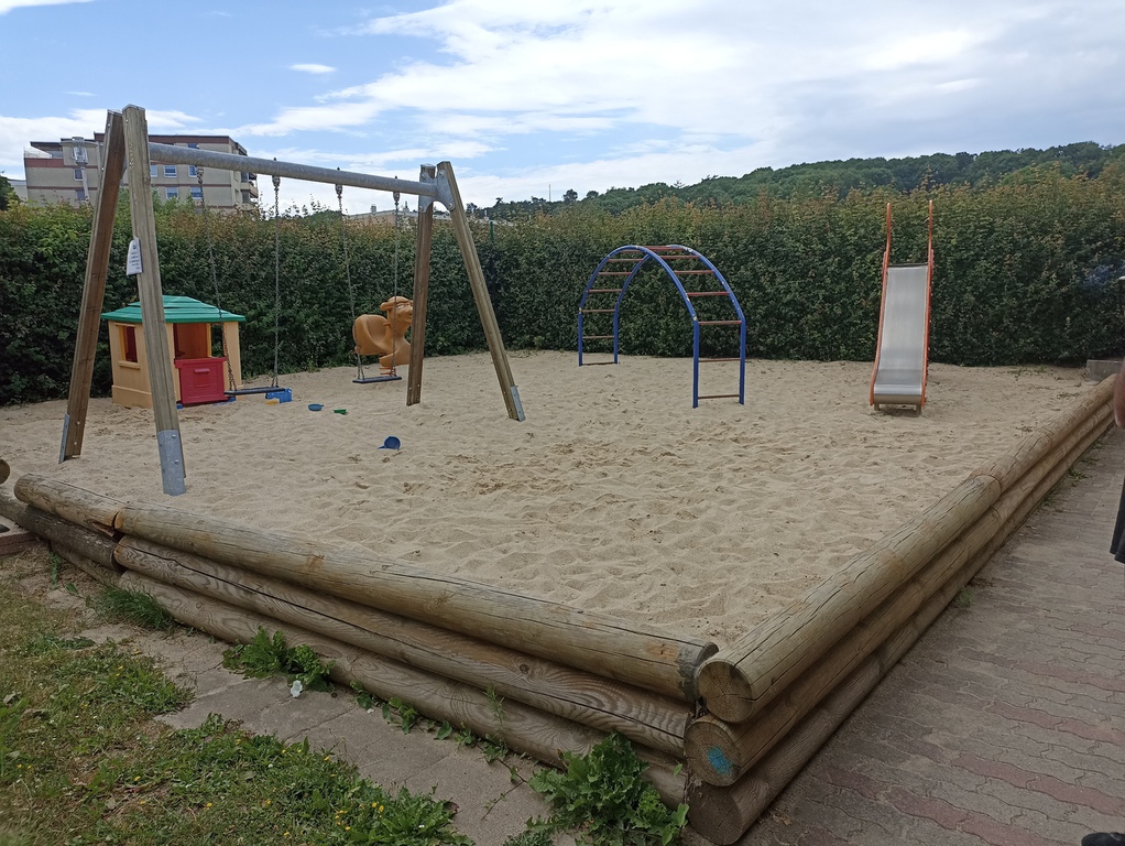 Dazu gehört das anliegende Gelände mit Spielplatz das vor allem im Sommer dazu einlädt auch draußen zu sitzen.